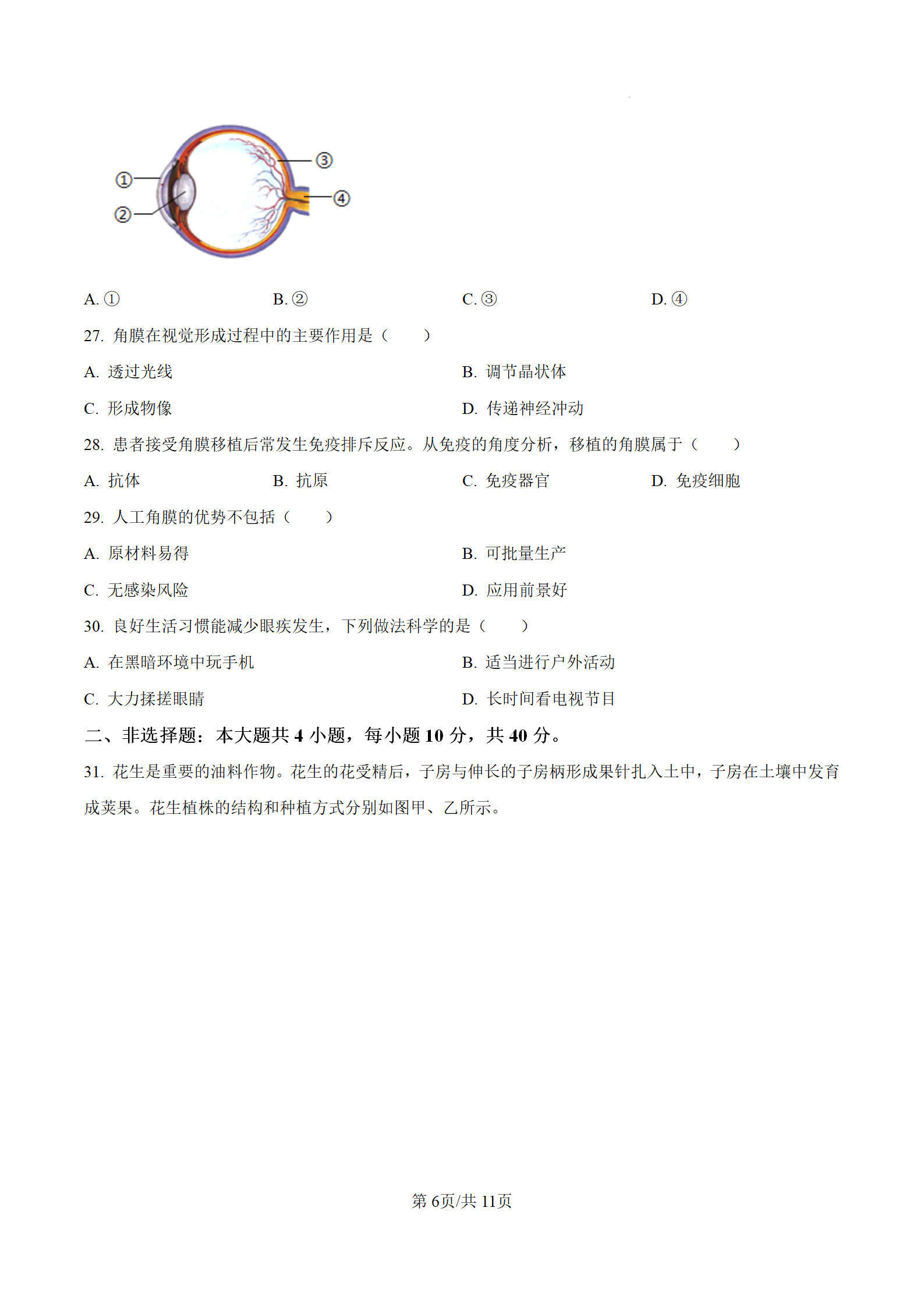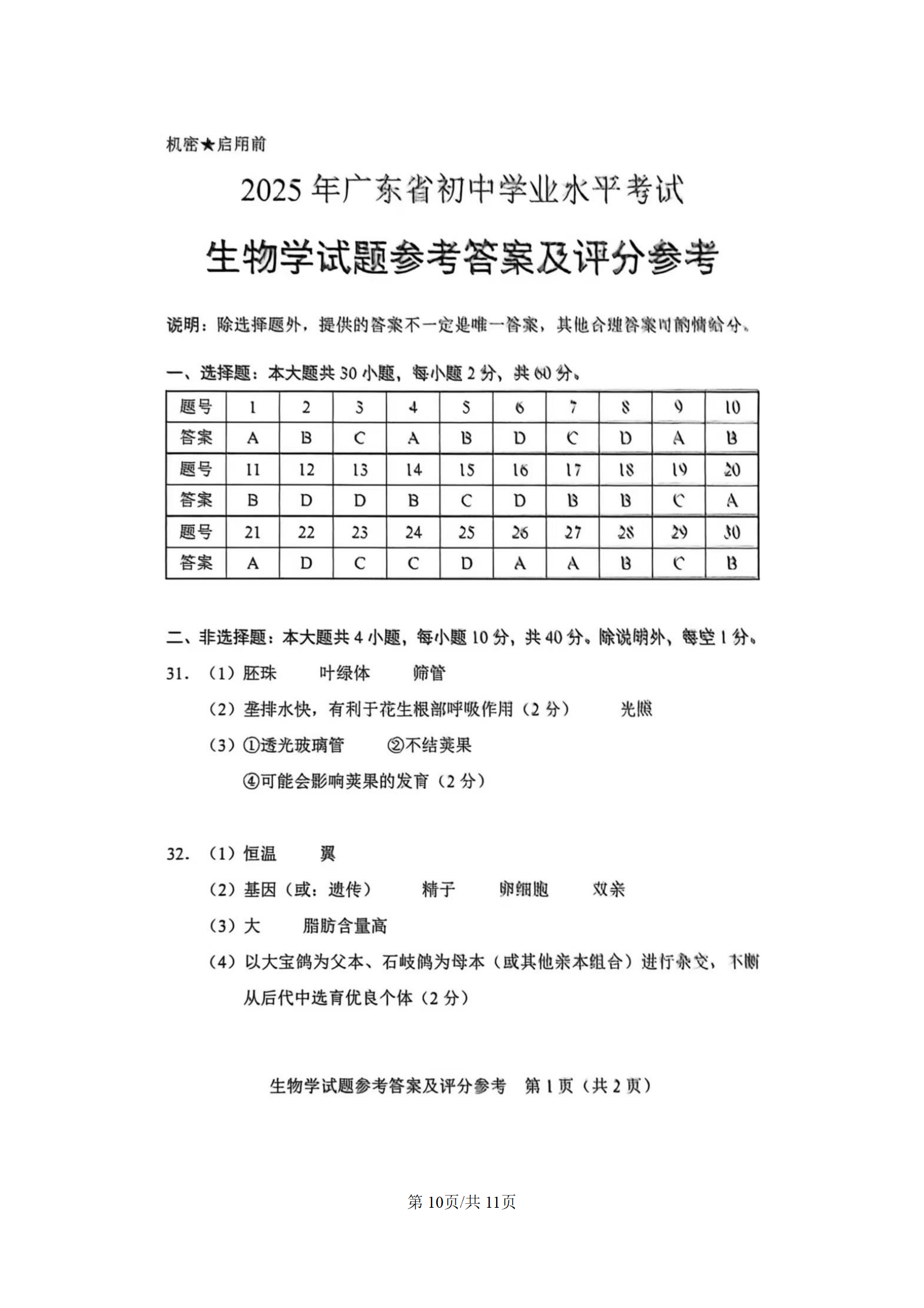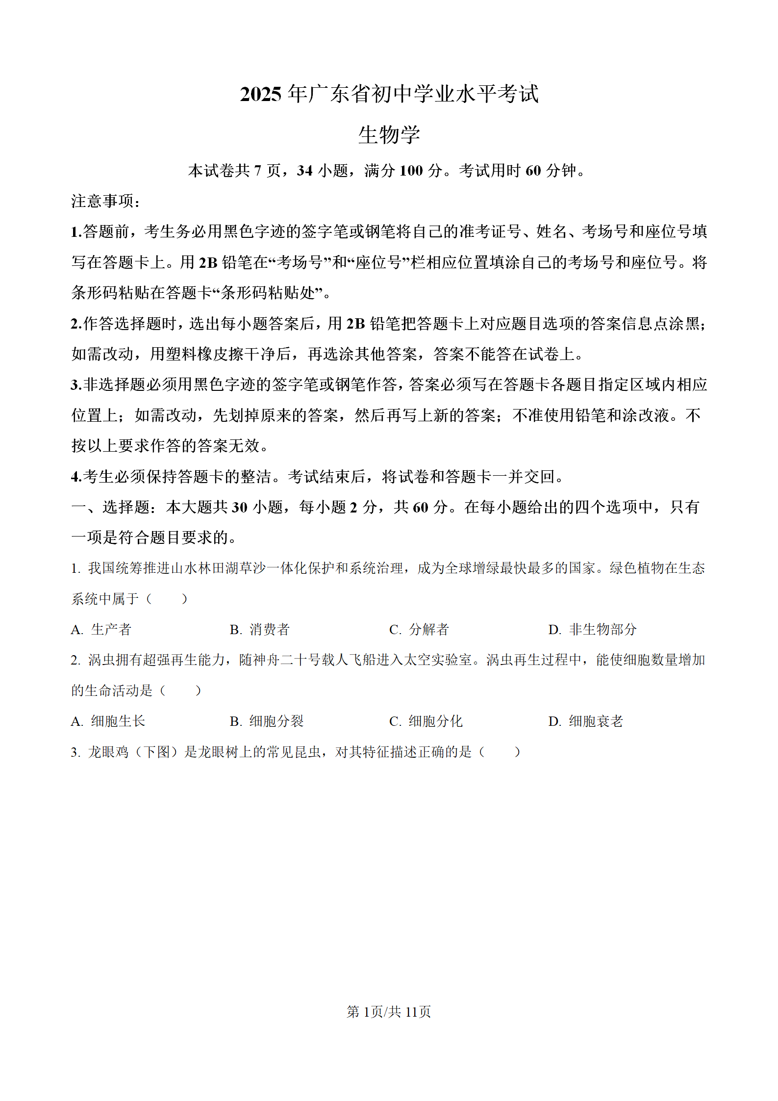 2025年生物中考(广东卷word版)2025年生物中考(广东卷).docx