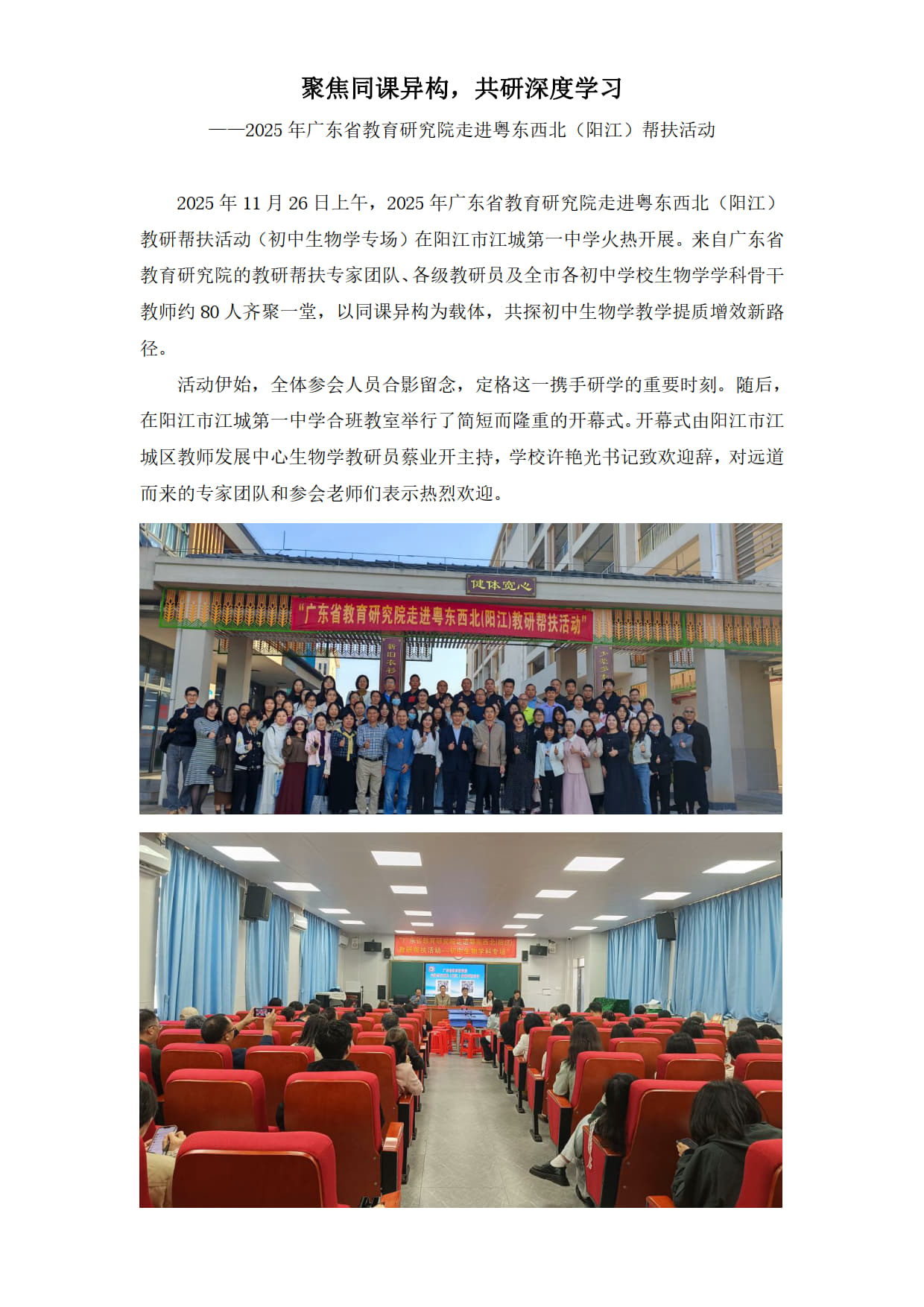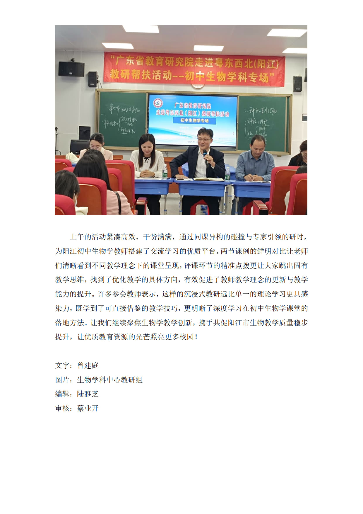 2025-02-08研析备考明方向 聚焦四新育素养——2025年江城、阳东、阳西中考一模联考生物学科分析会暨备考研讨